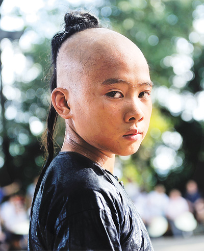 在岜沙最奇特、最容易看到的景观,是男子都留有发髻,并穿着自织土布缝制的古朴简约服装,被称为“秦代发式汉时装”。发髻盘于头顶,四周头发则被剃光。岜沙男子头顶的头发终生不剃除,其主要形成原因是岜沙人古老而朴素的对树的崇拜。
