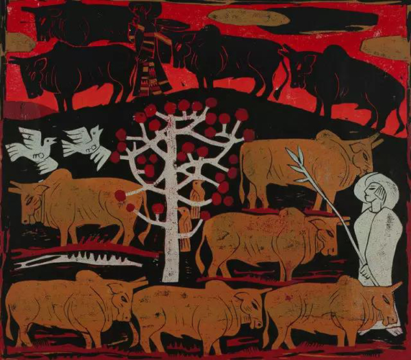 郑旭(1959—2011年)出生于普洱市澜沧县,是我国版画界知名的艺术家和艺术教育家。其作品根植于云南沃土,以独有的拉祜民族情怀诠释不同时期的艺术见解。在第六届全国美术作品展上,他的绝版木刻作品《拉祜风情1—染》《拉祜风情2—赶街天》荣获金奖,为云南美术实现了全国美展金奖零的突破,开启了云南版画创作的全面繁荣,被称为“绝版木刻的创始人”。郑旭生前的绝版木刻作品曾获全国版画优秀创作奖等多个奖项,版画作品曾在多家刊物发表,并被中国美术馆等单位收藏。