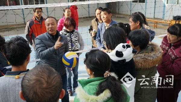 27日,我省首期气排球教练员培训班在昆明举行。来自全省各地的气排球爱好者在教练的带领下认真学习气排球要领。