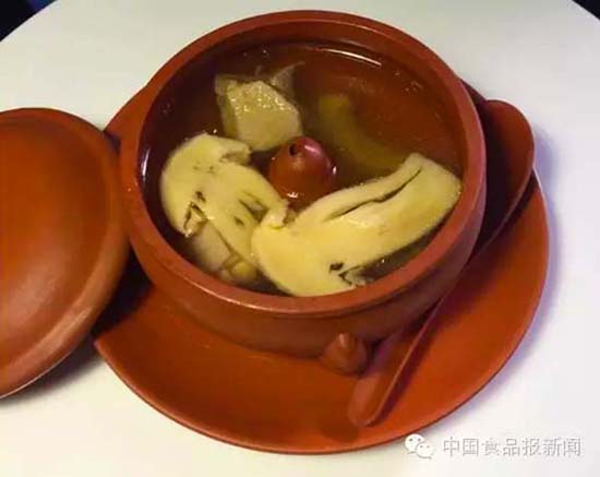 羊肚菌蟠桃乳饼配香酥茶树菇