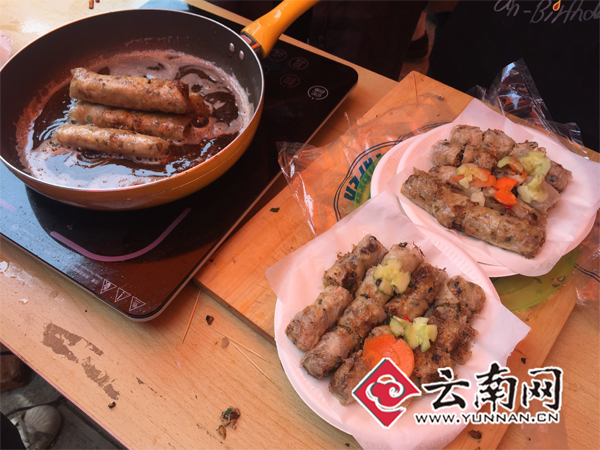 炸春卷是越南一道十分常见的小吃。由米做成的春卷皮裹着猪肉、香菇、粉丝、木耳做成的馅,放入油锅中炸至酥黄即可,吃起来酥脆不腻,十分可口↓