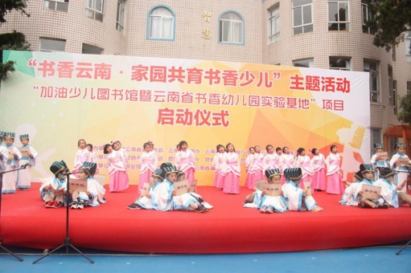 “加油少儿图书馆暨云南省书香幼儿园实验基地”项目作为省委宣传部、省文明办、省新闻出版广电局、云南日报报业集团共建项目,首期在昆明及周边城市选择100所具备条件的幼儿园,免费建设公益性加油少儿图书馆,为少儿阅读建立支撑体系,促进“书香云南”建设。