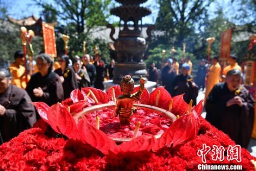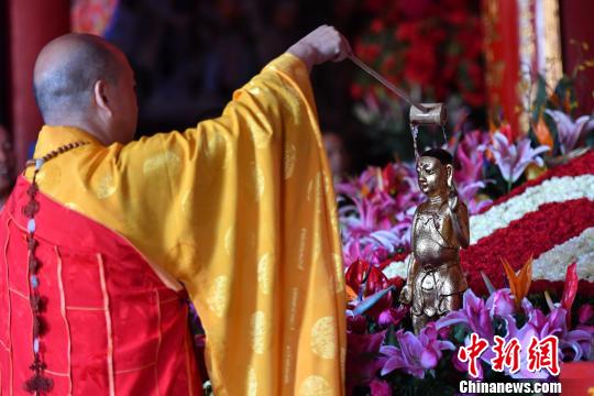 佛教四众弟子参加浴佛仪式。中新网记者 任东 摄