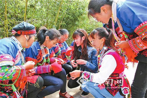 刺绣工艺师走进村寨,为彝绣女传授刺绣技艺。 云南日报通讯员 毕晓琳 摄