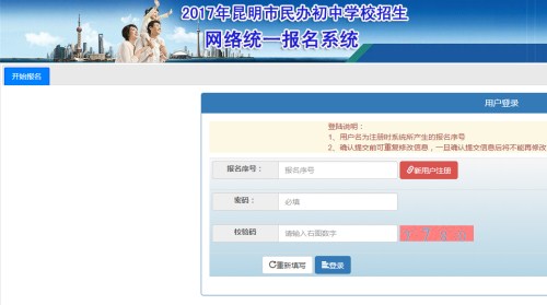 2017年昆明市民办初中学校招生网络统一报名系统截图