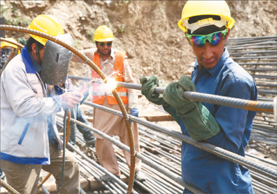 由中国路桥工程有限责任公司承建的喀喇昆仑公路二期(赫韦利扬至塔科特段)工程是中巴经济走廊早期收获项目之一。图为日前中国工人和巴基斯坦工人在喀喇昆仑公路二期(赫韦利扬至塔科特段)施工现场工作。新华社发