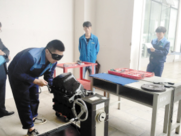 熟练地组装好机器设备对于技师学院的学生来说不算难,可你见过蒙上双眼完成比赛的吗?在技能竞赛决赛赛场上,参赛的学生们都戴着黑色的眼罩,但丝毫不影响他们把螺丝准确无误地安装到机器上,选手们熟练而又高超的技能显示出日常训练的成果。