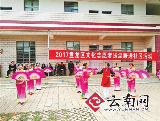 近日,盘龙区滇源街道组织志愿者到滇源敬老院,开展送温暖·进社区活动,为苏海社区群众及敬老院的老人们带来了文艺演出、关爱老人等志愿服务。