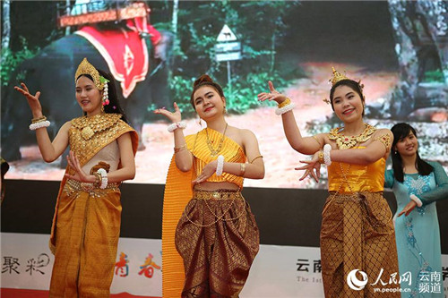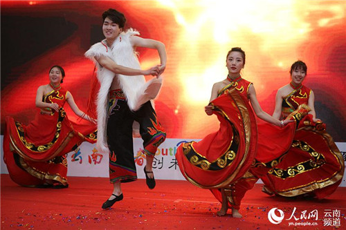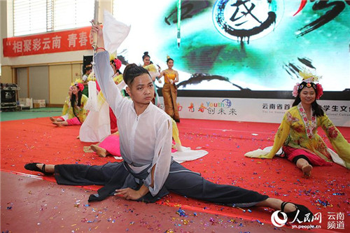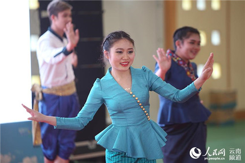来自昆明理工大学的学生在闭幕式上向留学生展示民族舞蹈。人民网 李发兴 摄