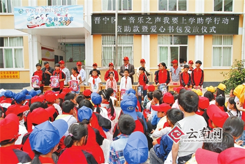 日前,由省妇联妇女儿童发展基金会牵头的“音乐之声·我要上学1200助学行动”,在昆明市晋宁区夕阳彝族乡民族小学举行项目资助款发放仪式。