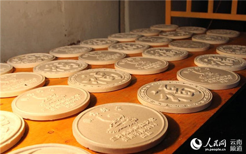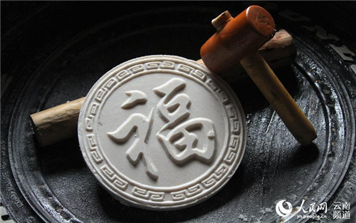 当地村民赵瑞龙开发制作的桃花盐工艺品。人民网记者 虎遵会 摄