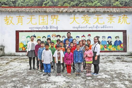吃过中午饭,校长邀请记者为全校师生拍摄一张全家福,他们选择了学校门口的一幅壁画做背景,因为“这里最漂亮了”。壁画上,十多个孩子手拉着手,脸上绽放着甜蜜的笑容。