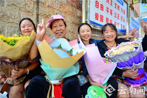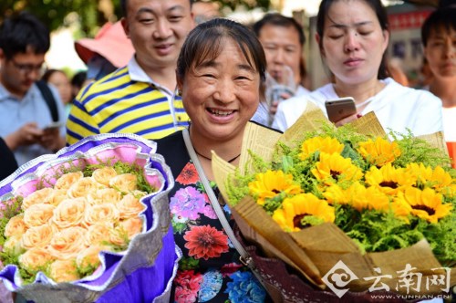 6月8日下午,几位家长在云大附中考点门口等待,最后一门考试前就为孩子们准备好了鲜花。