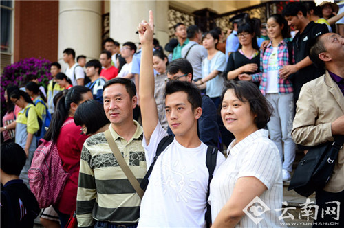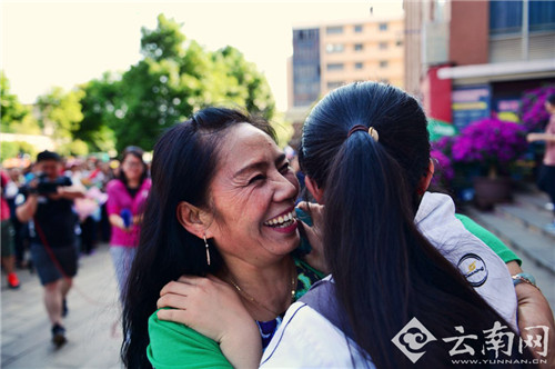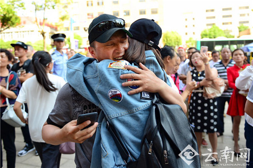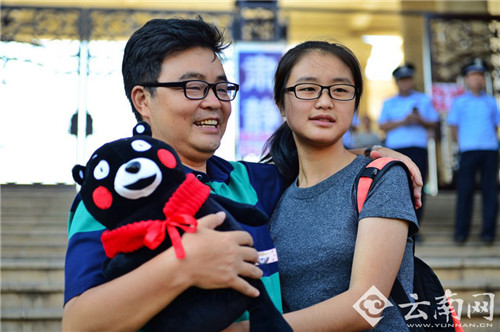 最后一门考试结束了,考生的心情也轻松许多,一位女生从云大附中考场走出来后热烈拥抱了等在门口的爸爸。