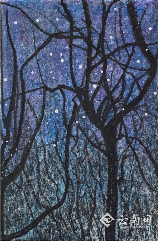 张志瑶《夜空》纸本色粉 18x25cm 2015年