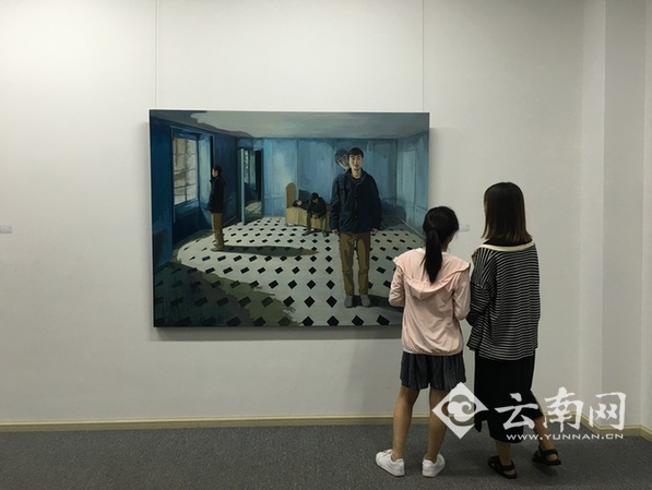 王莹的作品,正如她自己所介绍,充斥着一种“童趣”,《雾》系列作品,画面中的人物虽然体态丰腴,但是表情神态却有一种孩童般的纯真,画面色彩也温馨舒适;《口红》系列,主题虽然常见,但是呈现的方式却让人眼前一亮,各式各样的口红在画面中排列开来,引人去体会年轻女性的生活面貌。陶遐亮的油画,尺幅偏大,无论是色调还是主题都有一种日记式的风貌以及岁月的痕迹;画面中常见的是云南大学的校园环境,作者身边的同学等等,看他画他的同学就能感受到大学生涯中他们之间的情感。