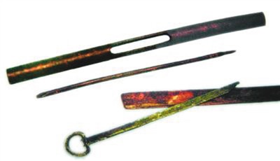 毛笔易折易损,难以保存,因而古笔很难觅见,迄今未发现西周以前的毛笔实物。1953年,湖南长沙出土的战国笔,是我国最早的毛笔实物。该笔用兔毛制成,用优质的精竹作笔杆,将笔毛围在杆的一端,再用蚕丝缠绕,外涂一层土漆,这支笔被命名为“楚笔”。后来河南信阳也出土了楚笔。湖北云梦、甘肃天水出土了秦笔。秦笔的杆大多采用中空的竹杆,上端削尖,下端较粗,镂空成毛腔,笔头纳入腔里,后世毛笔大体如此。蒙恬制笔时即选较坚硬的毛做中心,形成笔柱,外围覆以较软的披毛。这样的毛笔,既可使笔头保持浑圆,又利于吸墨,书写更具稳定性。