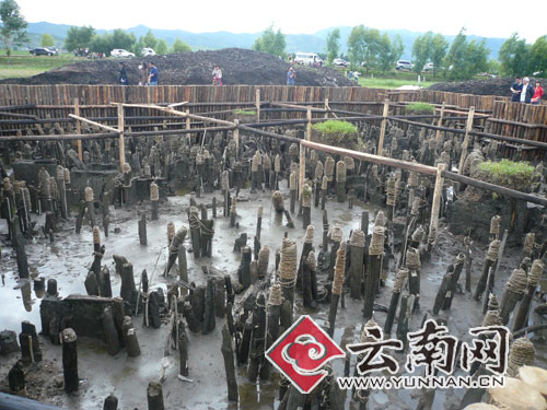 海门口遗址位于剑川县甸南镇海口村海尾河以西,面积约10万平方米,其年代从新石器时代晚期至铜器时代,是目前中国发现的早期最大水滨木构“干栏式”建筑聚落遗址。