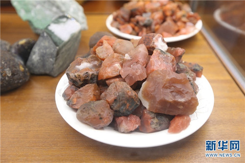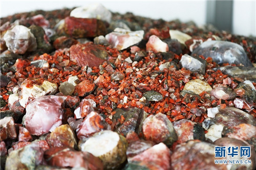 永子以保山特有的南红玛瑙、黄龙玉、翡翠和琥珀等为原料。新华网 何新闻 摄