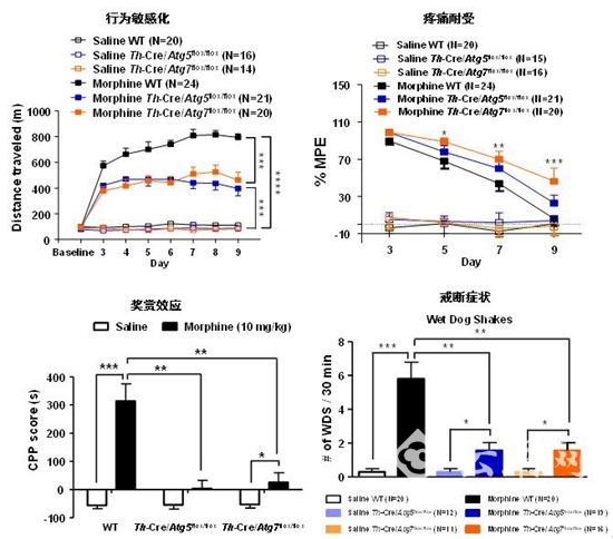 多巴胺能神经元特异性敲除Atg5或Atg7基因可阻断吗啡成瘾行为
