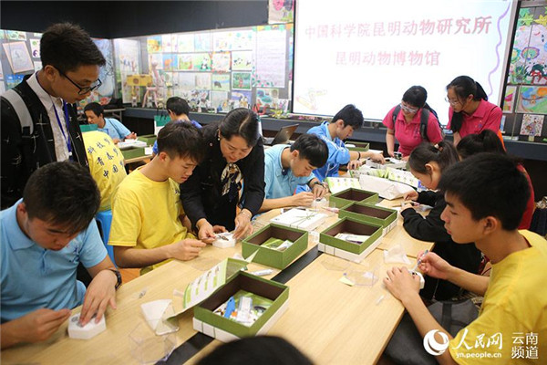 7月25日-28日,2017年青少年高校科学营(西部营)在昆明举行。26日,来自广西、贵州、云南等地的60名高中生走进西南最大动物主题博物馆——昆明动物博物馆,聆听昆虫专家讲座,学习昆虫姿态标本展翅技术,感受科学魅力。