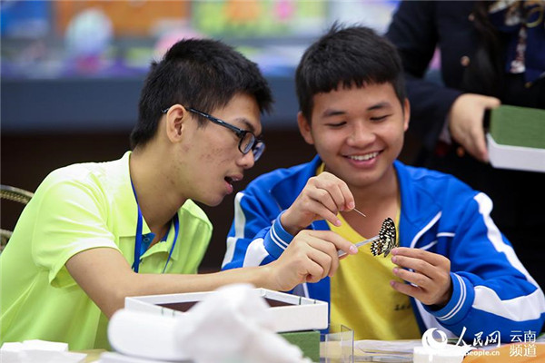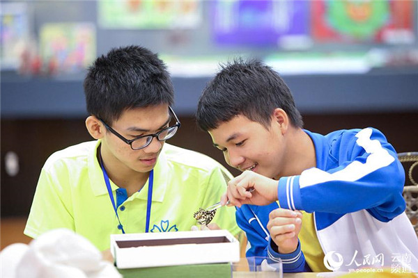 7月26日,来自广西、贵州、云南等地的60名高中生在昆明动物博物馆学习制作蝴蝶标本。人民网记者 李发兴 摄