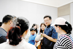 吴白雨(中)介绍云南青花。昆明日报记者 杨艳辉 摄