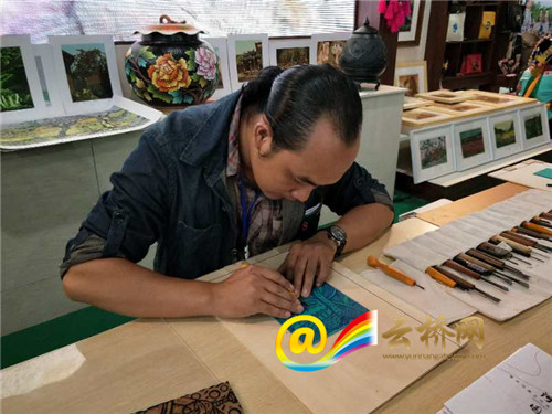 在2017文博会的现场,民间“绝版木刻”艺术家,现场展示这一独特的文化艺术技艺,作品主要展示云南自然风光、当地民族生活等,在一刻一画之间讲述着傣族、哈尼族、拉祜族等各民族团结互助,相互融合,共同发展的故事。