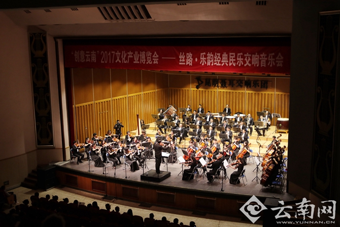 8月12日晚8时许,创意云南2017文化产业博览会开幕式音乐晚会“丝路·乐韵”一带一路经典民乐交响音乐会在春城剧院举行。