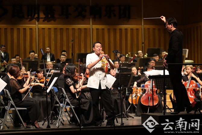 昆明聂耳交响乐团80人专业演奏一曲欢快的《节日序曲》为音乐会开场。随后,交响乐团与王铁锤、李春华、李贵中、郑强、李志华等演奏名家共同演绎了《夜深沉》、《鸿雁》、《高山上的欢乐舞蹈》、《滇池圆舞曲》等经典管弦乐作品。
