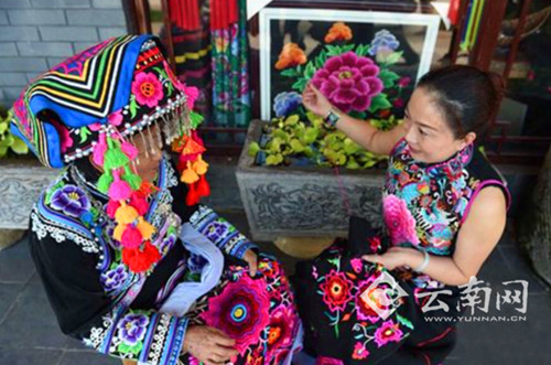 2014年,咪依噜服饰为代表的大姚服饰制作技艺和楚雄州服饰制作技艺被列为国家级非物质文化遗产项目。在本届文博会上,云南楚雄的彝绣也亮相于州市文产馆。颜色鲜艳、制作精美的彝绣服饰、挎包、卡片夹等,款式多样,设计也不再是传统的花色和图案,让人眼前一亮。