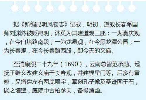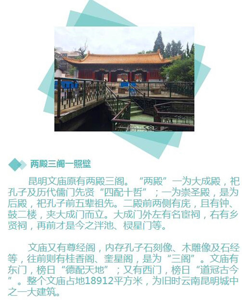 在从前,儒家思想文化在昆明的传播,老昆明的文化教育事业的发展,文庙中的大成殿都为之提供了较好的场所和起到了积极的作用。