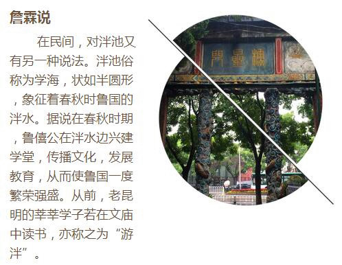 詹霖说,文庙的泮池上有石桥相连,寄寓了老昆明人的一种希望:只要勤奋努力,学海可济,学业可成,最终能到达成功的彼岸,日后也定可成为社会的有用之才。“而泮池里还有一条娃娃鱼,当时在昆明很出名,我们经常去看”,这成为幼年詹霖记忆中最鲜活的记忆。