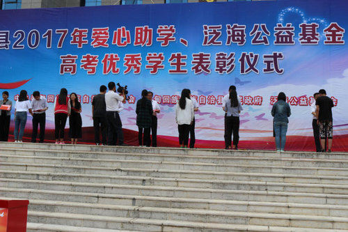近日,寻甸回族彝族自治县举行2017年爱心助学、泛海公益基金捐助暨高考优秀学生表彰仪式。捐助仪式现场,泛海公益基金会向寻甸县捐赠1000万元,同时,募集到社会各界爱心助学善款100.7195万元。