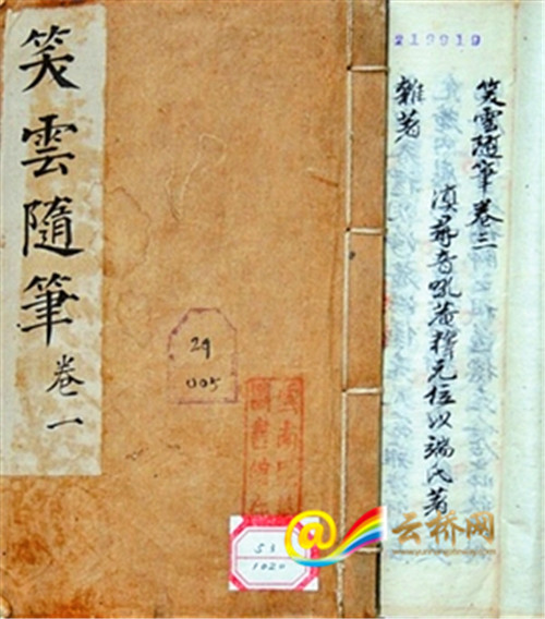 《笑云随笔》是作者的杂感和杂记。其中《钟灵以茂(元)秀禅友种树记》一文,记载了一个真实感人的故事。据此文所记,寻甸钟灵山原本树木丰茂,“堪为栋梁者,多不可数;至于为椽梠、为柴薪者满目皆是”。不料乾隆三十八年(1773)左右,山中音吼庵有“坏法僧”,勾结寻甸地方官、豪民和奸商,“不念前人种植蓄养之苦心,以私肥故,大张卖树之名。附近豪民闻风而来,稍补价值而任意采取……山中无处不见采取之人;无时不闻斧锯之声!如是者十有余年。尝闻买树者转卖他人,即有十倍之利,滥卖者所得树价,概不入公。一山大木,由此剪伐一空,良可慨矣!”