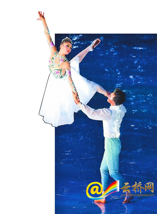 涛声滚滚,身着海河浪花演出服的演员缓缓入场,配合地面3D效果,翻转涌动,每朵浪花溅起,都幻化成一个现代体育项目的简笔画。