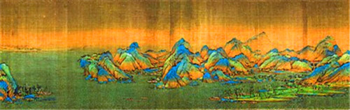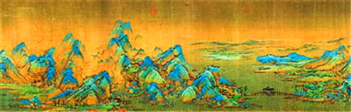 青绿山水画最早出现在魏晋时期,到唐代形成了以大小李将军李思训、李昭道父子为代表的第一个高峰。《千里江山图》是中国古代大青绿山水画的经典代表作,体量宏大、构思周密、技法深入、色彩绚烂,它把古老的青绿山水画推向成熟的高峰。