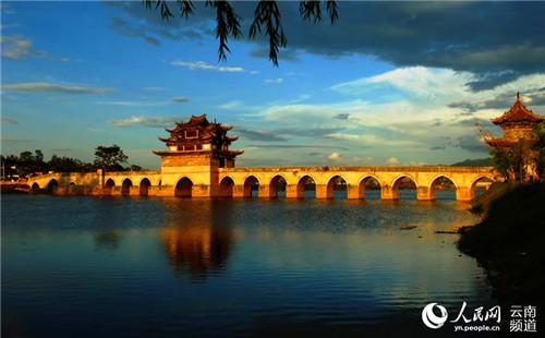 烟雨蒙蒙中,云南建水著名的十七孔桥上,一群艺术家用画笔和镜头记录建水的人文美景。当一幅幅双龙桥的写生油画出现在泸江河畔,围观的游客由衷赞叹:“画笔下的建水,有别样的美!”