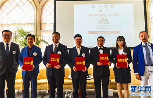 当地时间9月3日,在第74届威尼斯国际电影节“聚焦中国”之中意合拍片论坛上,“聚焦中国”活动主办方向参加本次活动的云南丽江等中国最美外景地代表颁发了证书。新华网记者 李宁 摄
