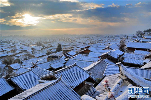 丽江古城雪景。木艳元 摄