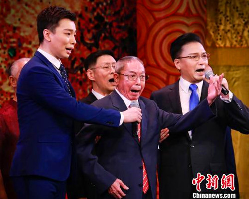 前排左起:谭正岩、谭元寿、谭孝曾。婉拉黛 摄(图片来源于中国新闻网)
