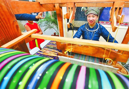 赤橙黄绿,织棱飞舞,在古老的织机上,广南县者太乡平贵村的农家妇女张凤仙将古老的壮锦织出了新天地。她掌握了出色的壮锦编织技艺,成为省级非遗传承人。在近年来传承提升非物质文化遗产传统技艺的进程中,张凤仙的壮锦技艺得到了更好地发挥,现在她成为当地壮族妇女编织壮锦增收致富的带头人。