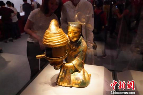 据记者了解,西汉长信宫灯多年来一直是当地明星展品,此次是它首次离开河北博物院赴外展出。这件出土于中山靖王刘胜妻窦绾墓的青铜器,以其巧妙设计闻名于世,宫女一手执灯,另一手袖似在挡风,实为虹管原理以吸收油烟,既防止空气污染又有审美价值。同样出土该墓的金缕玉衣也是此次展览中被围观的“明星”,这件金缕玉衣也是目前发现的保存现状最好的一件。
