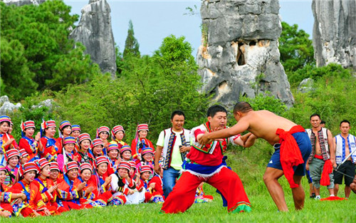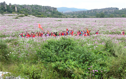 金秋十月,在“阿诗玛”的故乡,演绎体验电影《阿诗玛》经典片段及情景,通过体验彝族婚俗、度蜜月等活动,感受彝族撒尼人传统婚礼的浪漫真情。在乃古石林的绚丽花海间,开展“爱情宣言”、“呼唤阿诗玛”等心跳情节以及花海拍摄婚纱照,体验和见证海沽石烂的坚贞爱情。在彝族第一村参与闹新婚、吃彝王汤锅宴及其它一系列精心设计、独特精妙并富有传统彝族风俗的摔跤比赛、牛王争霸赛、民族歌舞表演、千人大三弦、万人篝火狂欢等多项传统经典文化节庆活动和石林美食、土特产品、非遗体验等,充分感受深厚丰富的阿诗玛文化和阿诗玛故乡淳朴多姿的风土人情和改革发展成果。