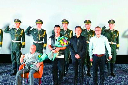 多名当代军人来到首映礼现场,与主创一起,向抗战老兵罗振诜老先生以及抗战英烈献花致敬。