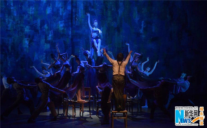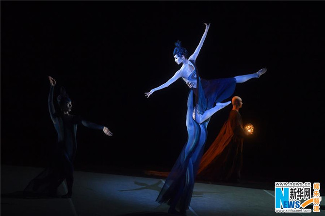 9月20日,演员表演芭蕾舞剧《敦煌》。当晚,中央芭蕾舞团大型原创芭蕾舞剧《敦煌》在北京天桥剧场首演。