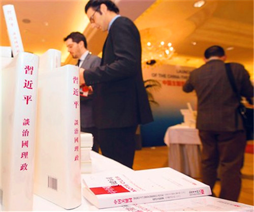 2017年1月,来宾在瑞士日内瓦举行的中国主题图书全球新年展销月启动仪式上浏览《习近平谈治国理政》。新华社记者 徐金泉摄
