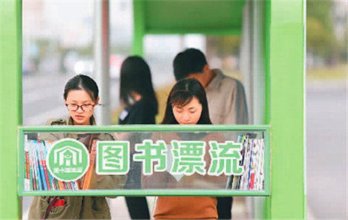 2017年9月,“漂流书屋”亮相江苏泰州的公园、景区、公交站台、街道社区等场所,让市民阅读更方便。汤德宏摄 (人民图片)