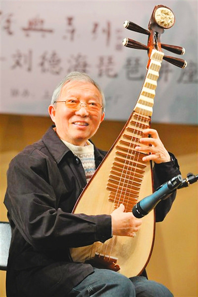 著名琵琶演奏家刘德海在演出中