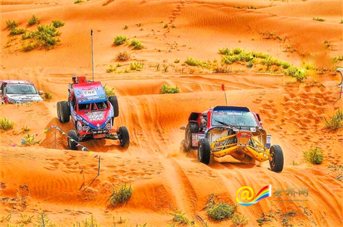 首日比赛起终点均在阿拉善梦想沙漠公园的营地内,全长57公里。力魔雄风车队被排在较后的发车位,金京/王少伟第39个发车,但这组来自银川的沙漠悍将凭借稳健的技术连续超越了前面的36辆赛车,全场总排名第3;老将徐挨利/何永生一路随行,表现稳定,全场总排名第7;首次参赛的新锐车手李锦明/吉亚图也顺利完赛。